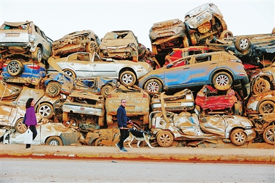 11月28日,在西班牙巴伦西亚的派波塔,人们经过被淤泥覆盖的破损车辆。 受强地中海风暴影响,暴雨自10月29日起袭击西班牙东南部多地,引发严重洪灾,导致200多人遇难。在一些灾区,街道仍被淤泥覆盖,堆满破损车辆和腐烂植被。 新华社发