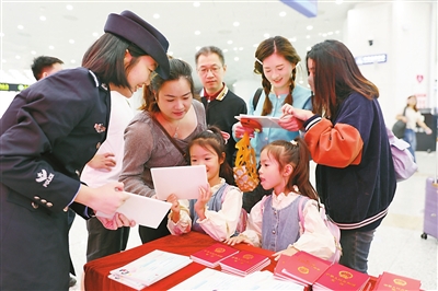 横琴边检站工作人员在横琴口岸开展宪法宣传活动。受访单位供图