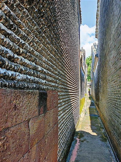 斗门南门村赵氏宗祠里的蚝壳墙诉说着历史的风雨,吸引着游客的目光。