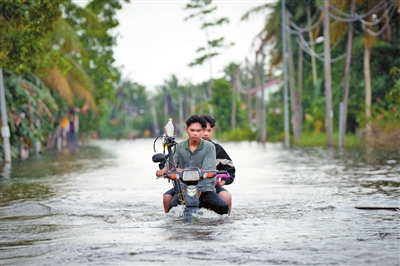 12月3日,在马来西亚道北,民众涉水出行。 马来西亚东海岸多地上周开始遭遇连续强降雨并引发洪灾。据当地媒体2日报道,洪灾已造成6人死亡。 新华社发