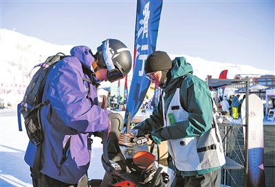 12月4日,雪友在活动现场挑选雪具。 当日,2024新疆热雪节主会场活动在阿勒泰地区禾木吉克普林国际滑雪度假区拉开帷幕。本次活动以“热雪丝路,我的新疆”为主题,分为粉雪嘉年华、赛事两大板块,将为各地滑雪爱好者带来冰雪盛宴,助力冰雪旅游发展。 新华社发