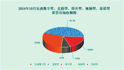 10月份,乐透数字型彩票销售128.35亿元,同比减少8.63亿元,下降6.3%;竞猜型彩票销售201.94亿元,同比增加12.10亿元,增长6.4%;即开型彩票销售82.13亿元,同比减少32.23亿元,下降28.2%;基诺型彩票销售29.83亿元,同比减少2.4亿元,下降7.4%。10月份,乐透数字型、竞猜型、即开型、基诺型彩票销售量分别占彩票销售总量的29%、45.7%、18.6%、6.7%。视频型彩票销售0.0011亿元,同比增加0.0002亿元。