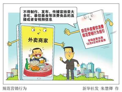 规范外卖商家营销行为。指引对外卖可能引发餐饮浪费的营销行为予以引导,明确相关环节防范餐饮浪费的具体要求。鼓励外卖商家建立健全内部管理制度,减少原料、成品浪费,提升餐饮供给质量,合理设置起送价格,优化满减优惠机制,明确不得制作、发布、传播宣扬量大多吃、暴饮暴食等浪费食品的直播或者音视频信息,进一步引导行业规范健康发展。