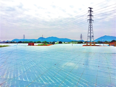 池塘盖“棉被”,助鱼虾过冬。 本报记者 苏振华 摄
