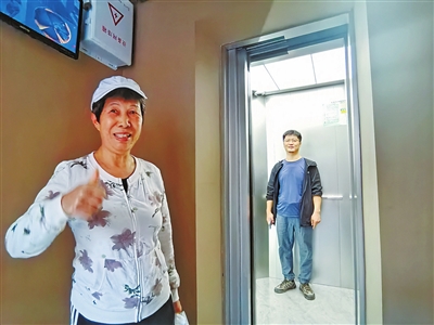 居民为新电梯点赞。 本报记者 赵梓 摄
