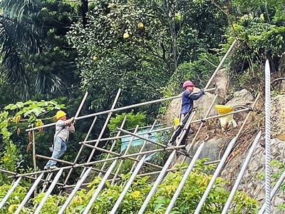 同时,胡湾社区积极发挥社区大党委作用,先后协调市自然资源局香洲分局、香洲区应急管理局及狮山街道城管办、应急办等多个单位和部门,对胡湾里一街15号的后山进行地质灾害隐患全面勘察和评估,确定了边坡的不稳定因素和潜在风险,组织专业施工队伍对大石块进行清理,并对边坡进行加固和修复。在整治过程中,社区还积极协调山边居民在台风等恶劣天气进行转移,并向居民们宣传地质灾害防范知识。