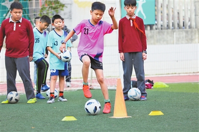 在九洲小学,足球成为链接家校的纽带。学校重点打造的“360体育”项目旨在构建全校参与的浓厚体育氛围,而足球则是首推项目。“每天7点半前,孩子们就开始晨练,足球活动已经覆盖了学校的50%以上的学生。我们不仅有班级联赛,还有家长联赛,这些活动不仅增进了家长与孩子之间的情感交流,还成为了社区体育、教育生态的重要组成部分。”桂也金介绍说。
