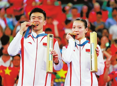 大图:在巴黎奥运会羽毛球混双决赛中,头号种子郑思维/黄雅琼战胜韩国组合金元昊/郑娜银,以六战全胜、一局未失的战绩登上奥运会最高领奖台。