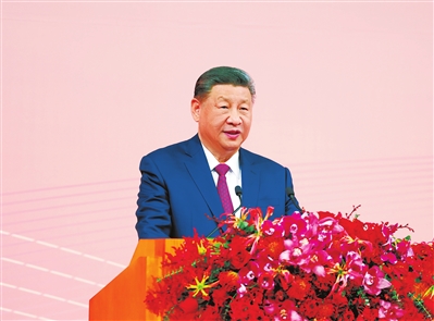 习近平表示,澳门拥有“一国两制”这一独特优势,已经打下坚实发展基础,乘着强国建设、民族复兴的浩荡东风,完全有条件有能力飞得更高、走得更远、实现更好发展。