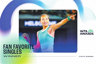郑钦文获WTA最受球迷欢迎奖