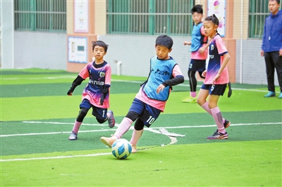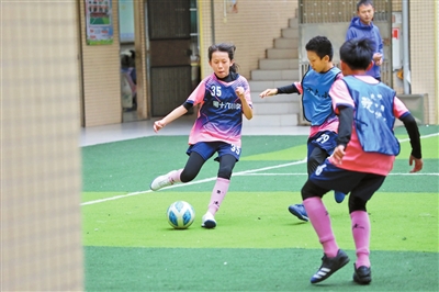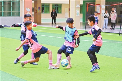 学校也积极应对这一变化,组织专业教练在有限的空间内开展足球技巧培训,如传球、射门和控球等基础练习,确保每位热爱足球的学生都能得到专业的指导。“我们基本上实现了人人会踢球,班班有球队,周周有比赛。”副校长刘阳说,学校的教学特色就是以艺术为依托,并十分注重学生的全方面发展,而体育工作就是学校艺术特色的重点课程。