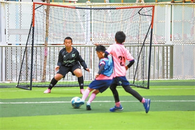 然而,这并没有减少孩子们对足球的热情和参与度。传球、射门、欢呼……尽管场地有限,这里也总是热闹非凡,小型三人球场上孩子们三五成群,在尽情奔跑,挥洒汗水,用实际行动诠释着对足球的热爱与追求。