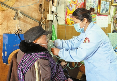 12月21日,浙江省诸暨市浬浦镇中心卫生院的网约护士上门为老人做雾化。 浙江省诸暨市浬浦镇中心卫生院通过“线上+线下”及“订单+个性医疗”的形式,为行动不便的病患接受医疗和护理服务免去奔波之苦。线下,签约医生根据群众需求提供免费送医送药、健康咨询、上门诊疗等服务。线上,群众通过服务端实现在线预约,执业护士“一键接单”,提供针对性的上门居家护理,让群众享受到“小病在基层、大病去医院、康复在村里”的医疗便利。 新华社发