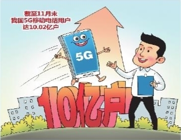 工业和信息化部12月23日公布的数据显示,截至11月末,我国5G移动电话用户达10.02亿户,占移动电话用户的56%,占比较上年末提高9.4个百分点。新华社发