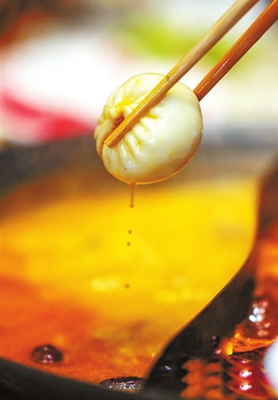 现包现蒸的包子,香气扑鼻、松软入味。还能把包子放在火锅汤底中,包子皮吸满汤汁,咬一口,肉汁爆满,让人回味无穷。