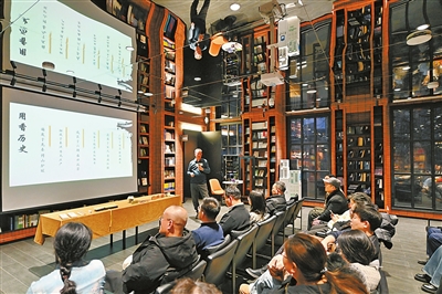 在天津意式风情区钟书阁书店,读者参加一场传统文化夜读体验活动。