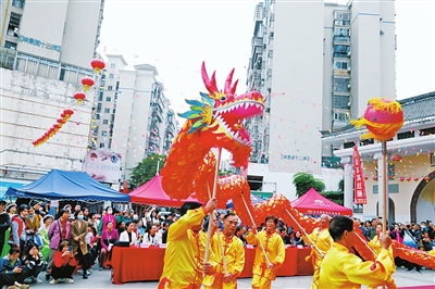 龙狮贺新春节目。 本报记者 赵梓 摄