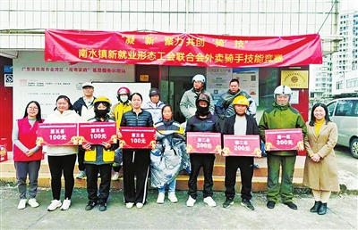 本报讯(记者宋一诺 通讯员罗颖姗)外卖骑手作为连接商家与消费者的桥梁,其专业技能和服务质量水平越来越重要。为进一步激发外卖骑手的工作热情、提升其专业技能,近日,南水镇新就业形态行业工会联合会开展“凝‘新’聚力 共创‘骑’技”南水镇外卖骑手技能竞赛。