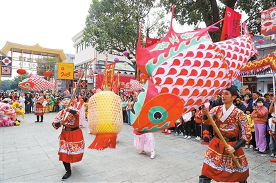 据了解,年货节期间,唐家古镇还会举办一系列精彩纷呈的文化表演和互动体验活动。舞龙舞狮巡游、腰鼓表演、露天电影、时光音乐会等活动好戏连台,为市民游客带来视觉和听觉的双重享受。同时,挥春写福、中国结花艺制作等充满年味的互动体验区也吸引了众多市民游客参与,让大家在体验中感受到了浓厚的中国年文化氛围。