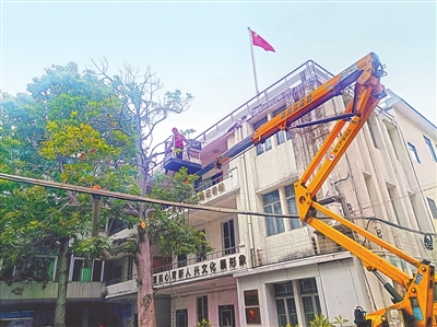 本报讯(记者郑振华)“园林中心安排吊车、专业人员,对小区内7棵大树进行修枝,安全隐患得以消除,真的太感谢了。”22日,家住香洲区狮山街道东风社区新光里三街23号小区的郭姨,看着眼前修剪整齐的树木开心地说。