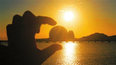 金灿灿的太阳从海平面升起,“日月贝”在两指之间显得格外小巧可爱。 拍客:彭林 地点:情侣路 稿费:50元