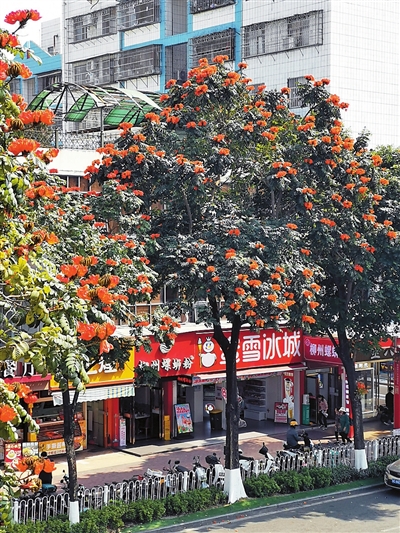 春天来了,路边的火焰树又开始热情地“燃”了起来。