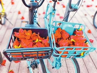 几场春雨过后,车篮子里落了厚厚的火焰花,挨挨挤挤地叠在一起,给公园的一角带来浓浓的春意。 拍客:何芳 地点:滨河公园 稿费:30元