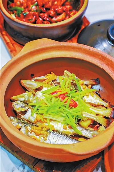 砂锅是这道美味的精髓,即使不煮菜,也要在炉子上烧着,保持砂锅的温度。鱼仔煲精选牛仔鱼、蚬鱼、沙锥鱼,加入普宁豆酱翻拌,让咸鲜滋味渗入每一寸鱼肉。