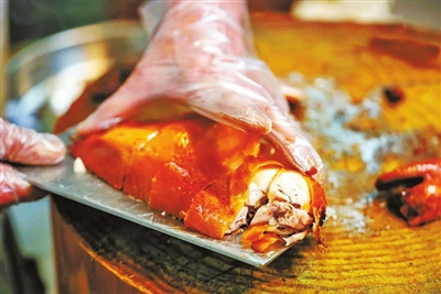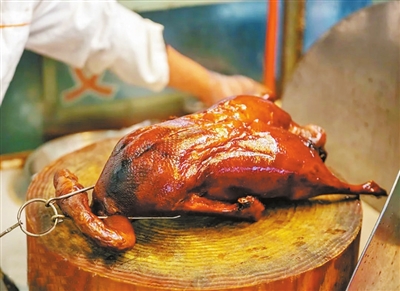 古法烧鹅作为广东传统名菜之一,其制作工序更为讲究,烧制时间也更久,需在瓦缸烤炉里炙烤45分钟方可出炉。