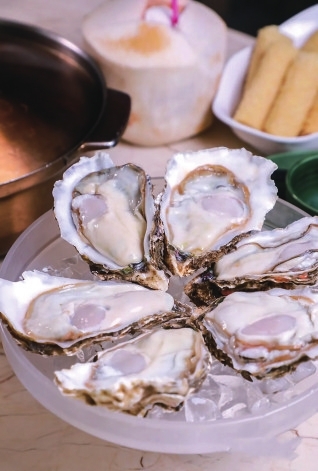 同样超大个的台山生蚝,个个肥美饱满,一口下去鲜嫩爆汁,经椰子鸡汤轻涮,更添一丝清甜回甘。