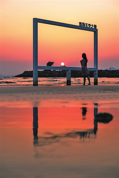 夕阳似火,“珠海天空之镜”旁,一名女子的身影静立其间,构成一幅充满诗意与静谧氛围的画面。 拍客:裙子 地点:横石基海滩 稿费:30元