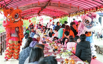 本报讯(记者张帆)3月30日,一场独具特色的长桌宴活动在斗门区斗门镇斗门村深潭村(自然村)举行。扎狮头、醒狮表演、唱粤曲、品美食……活动聚集本土美食与文化元素,并通过今后常态化的举办方式,进一步拓宽农民增收渠道,实现村集体和村民双增收,展现斗门镇在乡村振兴和 “百千万工程” 中的创新实践。