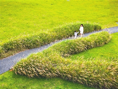 漫步于绿草地的蜿蜒小径间,尽情享受春天里的亲子时光。