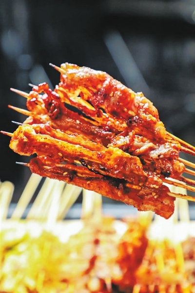 脑洞大开!Duangduang爆汁的肥牛,串成30厘米超长串!猛火快烤,薄切优势尽显!边缘微卷焦脆,内里鲜嫩可口,酱汁吸得饱饱,肥牛片层层叠叠,霸气侧漏。