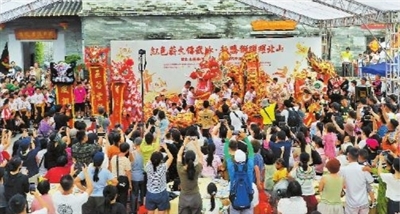 本次活动邀请了来自澳门、中山、鹤山、斗门等地共15支龙狮队伍来到北山村共同献礼,鹤山鸿义龙狮团、中山黄圃弘艺堂龙狮团、泽华堂龙狮团等团队纷纷秀出拿手好戏,现场采青瞬间收获如潮掌声,高桩飞跃带起全场的阵阵惊呼,“七星鼓法”更显古朴韵味。