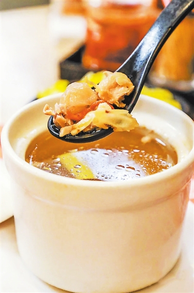 吃煲仔饭,配个炖盅,这一干一湿是老广传统吃法。有时食客来得晚,得知炖汤卖完了,还会有点失望。