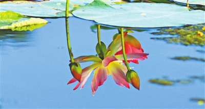 倒映在水中的荷花,展现出美丽的倒影,令人叹为观止。