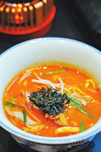 Q弹劲道的手工面条浸满了沙茶酱熬制出的浓稠汤汁,脱骨肉鲜嫩入味,豆芽与韭菜清新爽口,咸鲜甜辣交织,浓郁诱人。