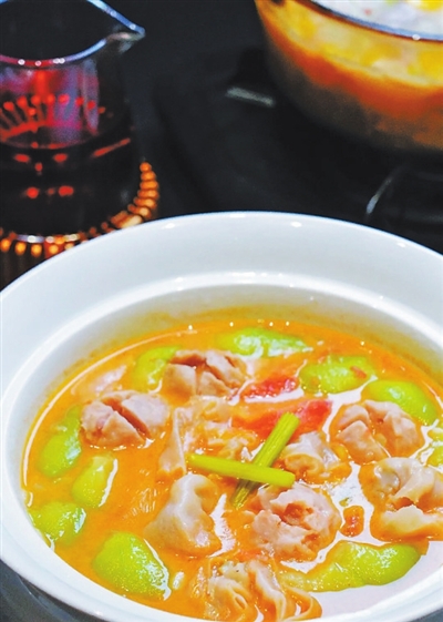 番茄丝瓜煮芋丸鱼皮饺