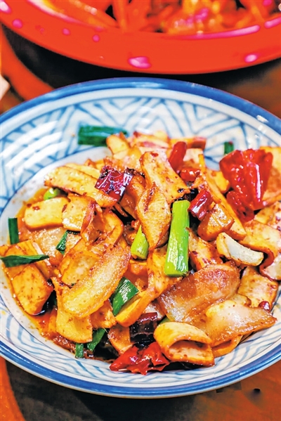 从湖南攸县运来的香干,土里土气但又有一股独特的味道。辣椒入味但没抢掉豆腐本身的豆味,豆香气十足。