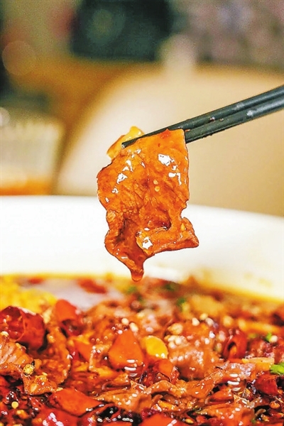 不腌制,牛肉现切现煮,最大程度保留肉香。花菜打底,灵魂勾芡,辣油一淋,传统川魂瞬间觉醒。