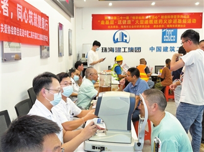 本报讯(记者温泳珊)9月26日下午,由珠海市社会科学界联合会主办、珠海市关爱协会承办的珠海市第二十一届“悦享社科·启智润心”社会科学普及月活动——“走基层·送健康”大型送医送药义诊进基层活动走进金湾区红旗镇,为奋战在城市建设一线的工友们送去一份实实在在的健康关怀。