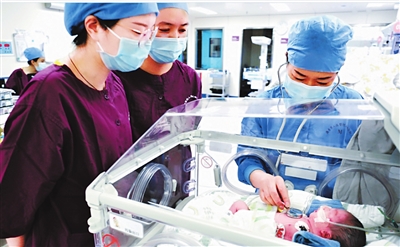 医生给新生儿做检查(资料图)。 本报记者 程霖 通讯员 叶莹 摄