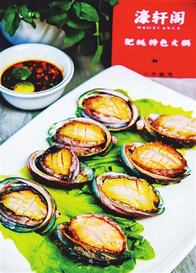 7头大连鲍起花刀后涮煮2分钟,口感脆鲜,吸满汤底鲜味,营养与风味兼具。
