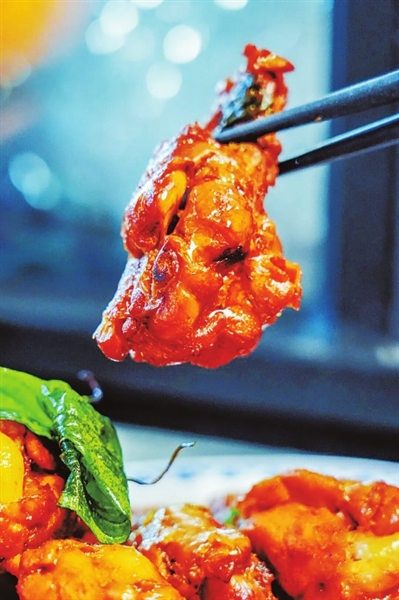 “三杯”是台湾菜的经典做法。用米酒、酱油和麻油做基底,加入九层塔焖煮小鸡腿。鸡腿肉炖得软嫩,轻轻一撕就能脱骨,酱汁裹着独特香气,连骨头缝里都吸满了味,“全家都爱”的名头可不是说说而已。
