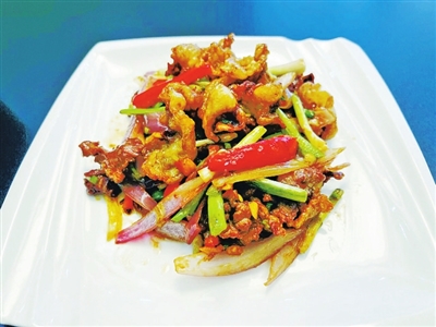 牛胸油入口油润不腻,带着恰到好处的嚼劲,葱段爽脆解腻,两者搭配在一起,拌着米饭吃能轻松干掉两大碗。