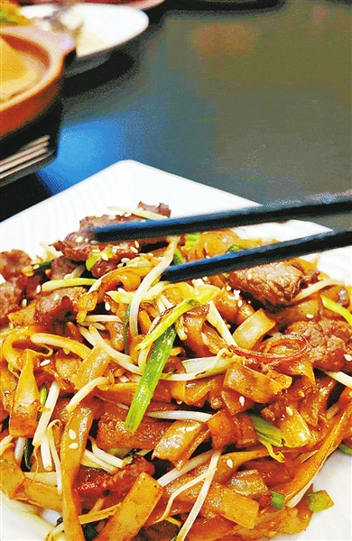 最后来一份港式干炒牛河收尾再合适不过。河粉宽薄爽滑,根根分明。大片的牛肉嫩而不柴,豆芽和韭菜的加入增添了清爽口感。
