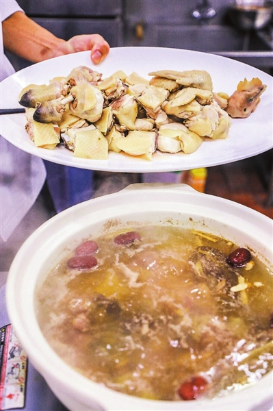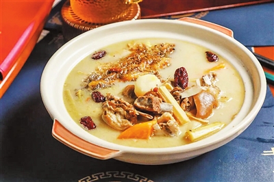 选用新鲜甲鱼和走地鸡,加入白胡椒、红枣、姜片等材料炖煮20分钟。甲鱼Q弹软糯,鸡肉软烂入味,天冷时喝上这样一碗养生汤,既能暖身驱寒,又能滋补元气。