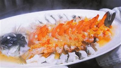新鲜鲈鱼片得厚薄均匀,铺上海虾,撒上满满的蒜蓉上锅清蒸。蒸制的时间得掐好,最大程度锁住鱼肉的鲜嫩和海虾的脆弹。口感清淡鲜美,与北方菜的厚重巧妙互补,满足南方食客的味蕾。