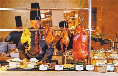 盛宴全日餐厅主打自助餐。这里有上百种美食,游水海鲜、鲜活刺身、烤肉、甜品酒水应有尽有,全部无限量供应,老饕们可以吃到扶墙出。